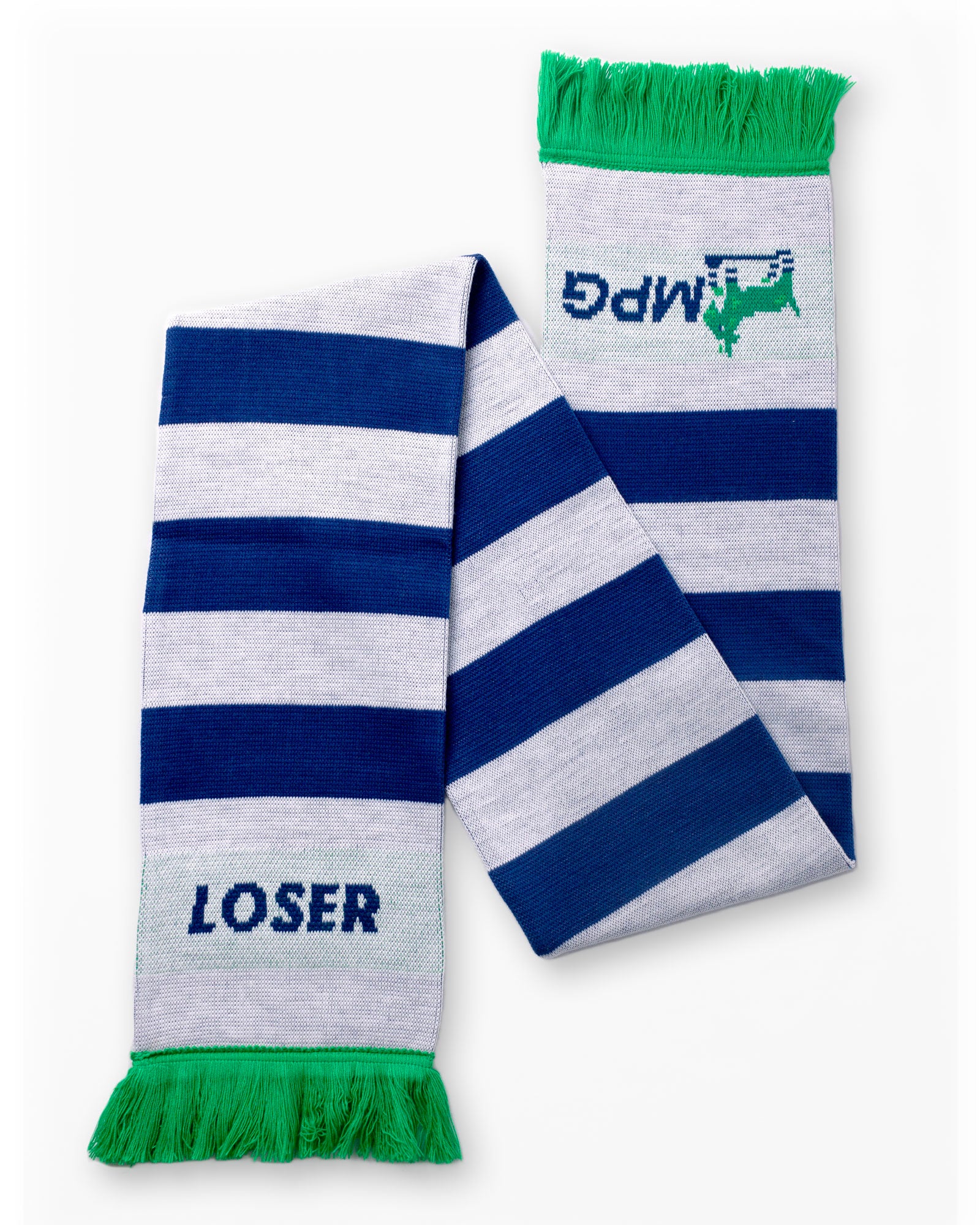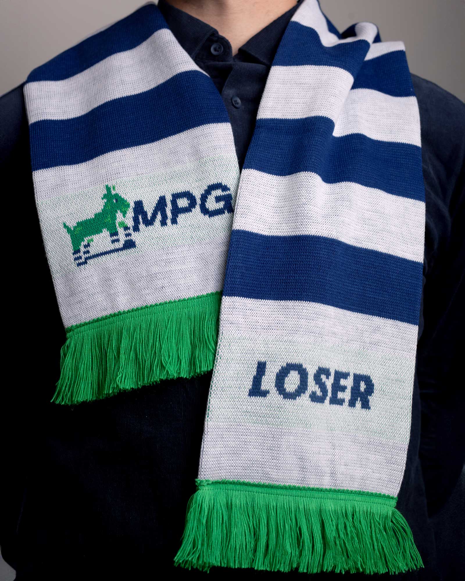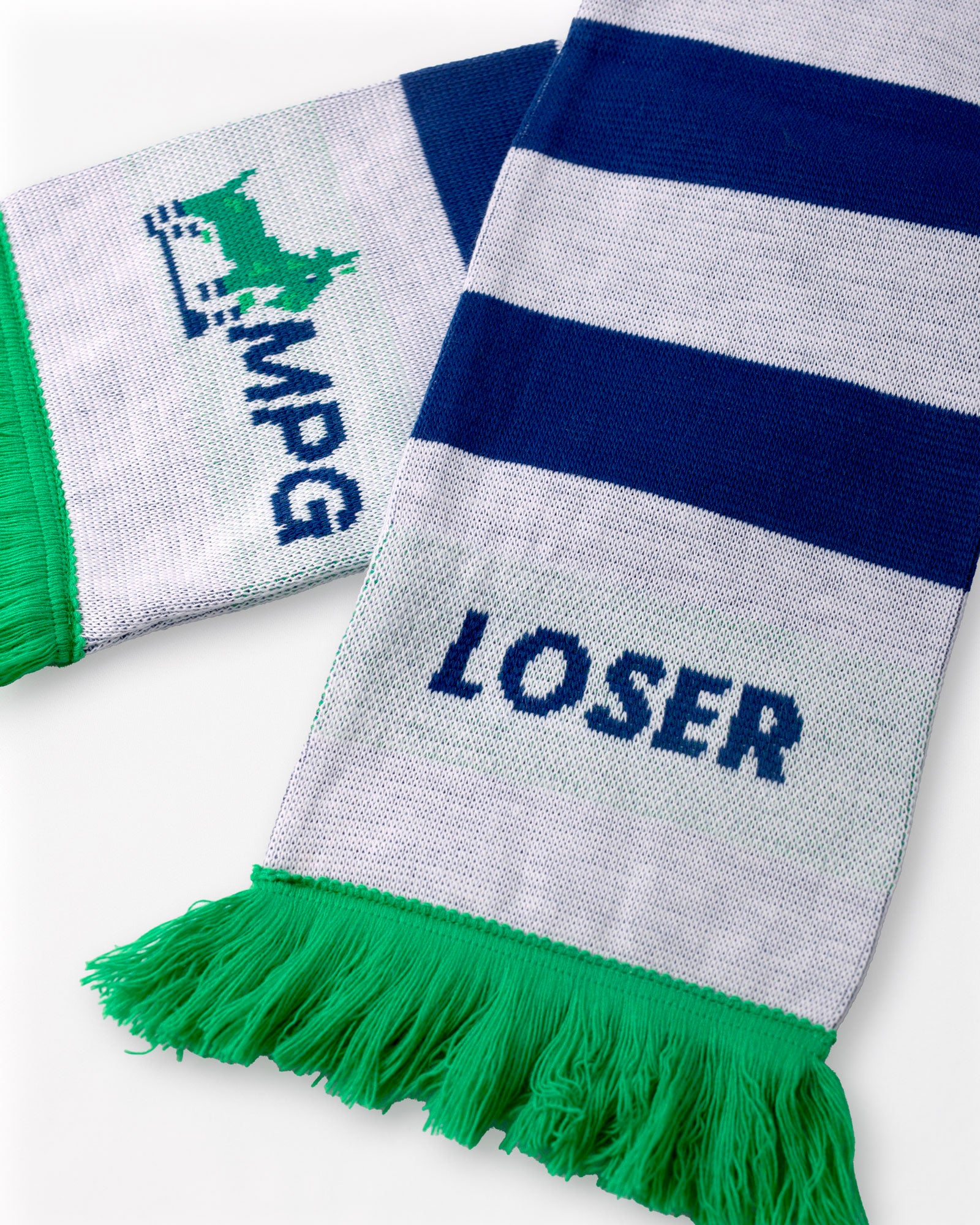 Pour l'hiver, quoi de mieux que notre toute nouvelle écharpe Loser MPG ? A défaut d'avoir gagné, tu pourras avoir chaud !